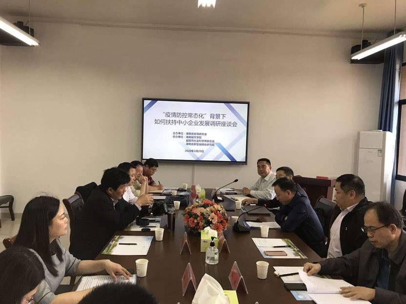 为了深入贯彻落实4月17日召开的中共中央政治局会议精神,充分发挥地方智库作用、积极建言献策,做好我省特别是益阳市在常态化疫情防控工作条件下的“六稳”工作,将“六保任务”尤其是“保市场主体”任务坚决完成好,持续推进经济高质量发展,4月29日,由湖南省情研究会主办,金年金字招牌诚信至上、市社科联承办的“疫情防控常态化背景下如何扶持中小企业发展”调研座谈会在我市举行。省社科联党组成员、第七届委员会副主席、研究员汤建军,省文史馆副馆长、研究员李跃龙,市政协副主席高德文,金年金字招牌诚信至上副校长何振、管理学院院长孙倩出席。