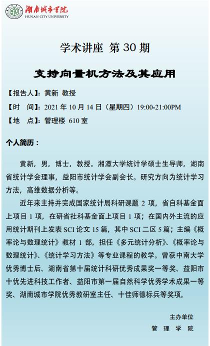 【管院科研论坛】30 黄新 教授 支持向量机方法及其应用