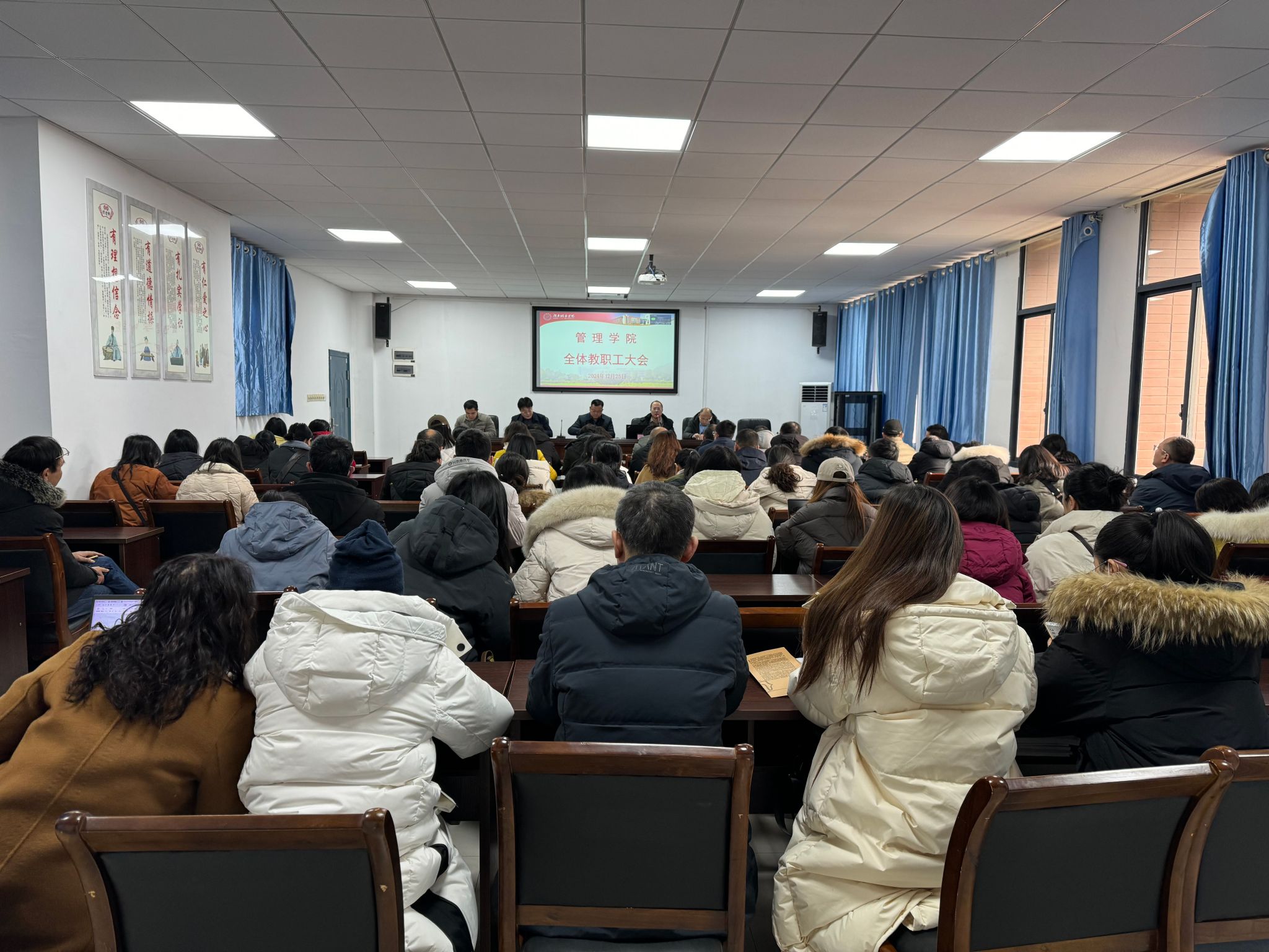 本网讯(通讯员:石秋凤)为总结过去的工作成果、规划学院未来的发展方向、增强教师的凝聚力与向心力,12月25日下午三点,管理学院在管理楼504会议室举行五届三次教职工、工会会员大会。管理学院全体老师参加,会议由党委副书记王方俊主持。
