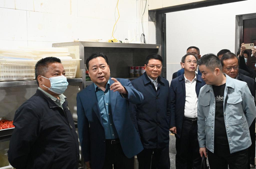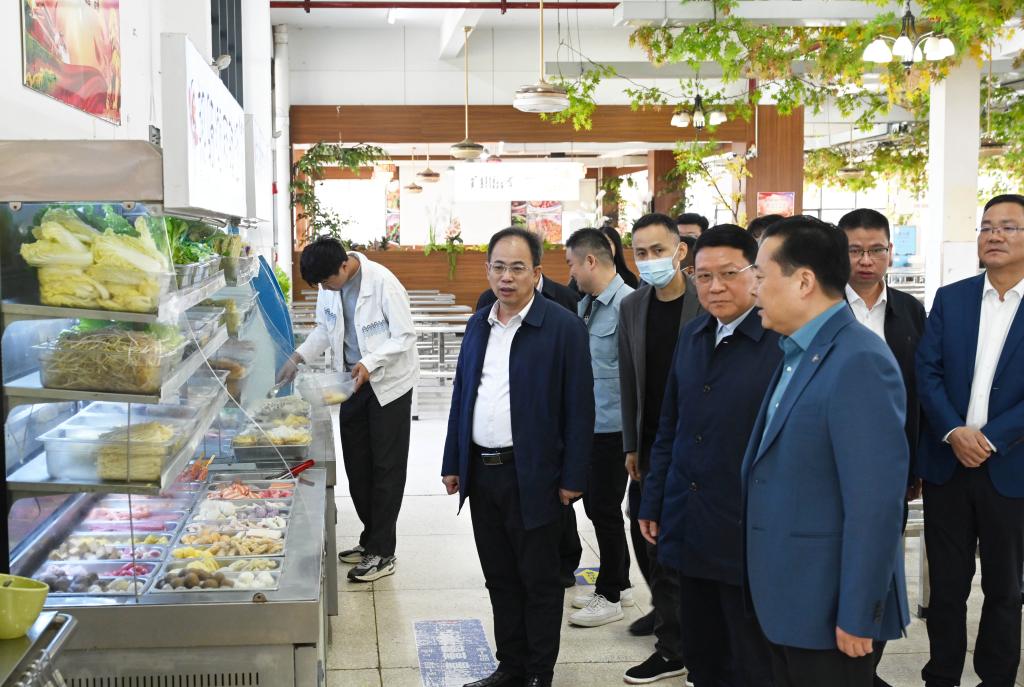 熊炜一行深入学校堂食门店、食堂仓库、食品加工间、消洗间等场所,逐一检查原辅材料采购、食品加工、餐具消洗等环节,详细了解经营状况、质量安全管理体系、食品安全追溯机制、常态化安全隐患防控、“两个责任”制度落实等情况。