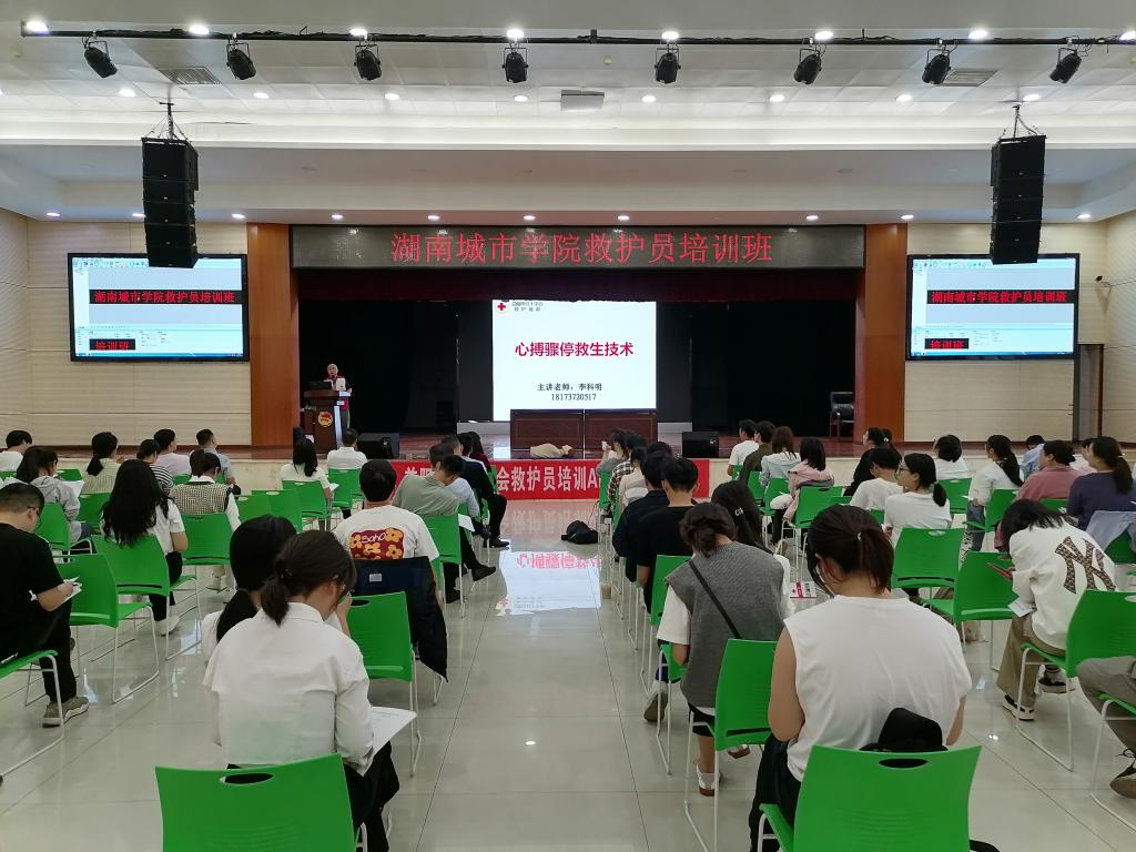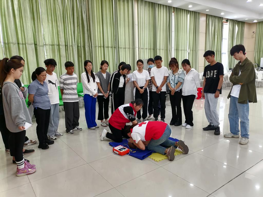 为进一步加强金年金官网师生员工应急救护队伍建设,普及应急救护知识,提升金年金官网应急救护水平,推动健康校园建设,根据益阳市卫生健康委、益阳市红十字会的安排,10月24日下午,由后勤管理处组织的CPR+AED(心肺复苏和自动体外除颤器)培训在学生活动中心开展,来自机关处室和二级学院的80余名教职员工参加了培训。