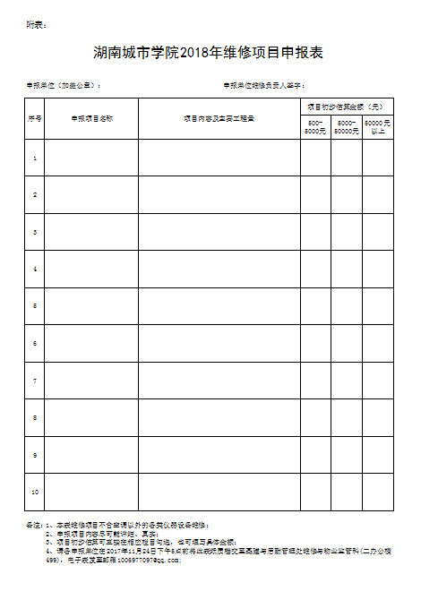 附表:《金年金字招牌诚信至上2018年维修项目申报表》