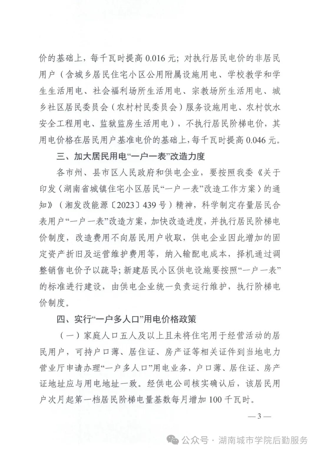 根据《湖南省发展和改委员会文件 湘发改价调规[2024]14号》文件,湖南省发展和改委员会关于我省居民阶梯电价制度及有关事项的通知,学校居民合表电价上调0.046元/度,学生宿舍、家属区、食堂、热水公司、洗衣机公司等执行居民合表电价的用电单位全部调整为0.635元/度。