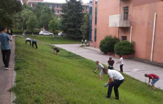 活动最后,还开展了“党旗在基层一线高高飘扬”实践活动,全体党员在化工楼沿线马路、绿化带清理校内白色垃圾、杂草。
