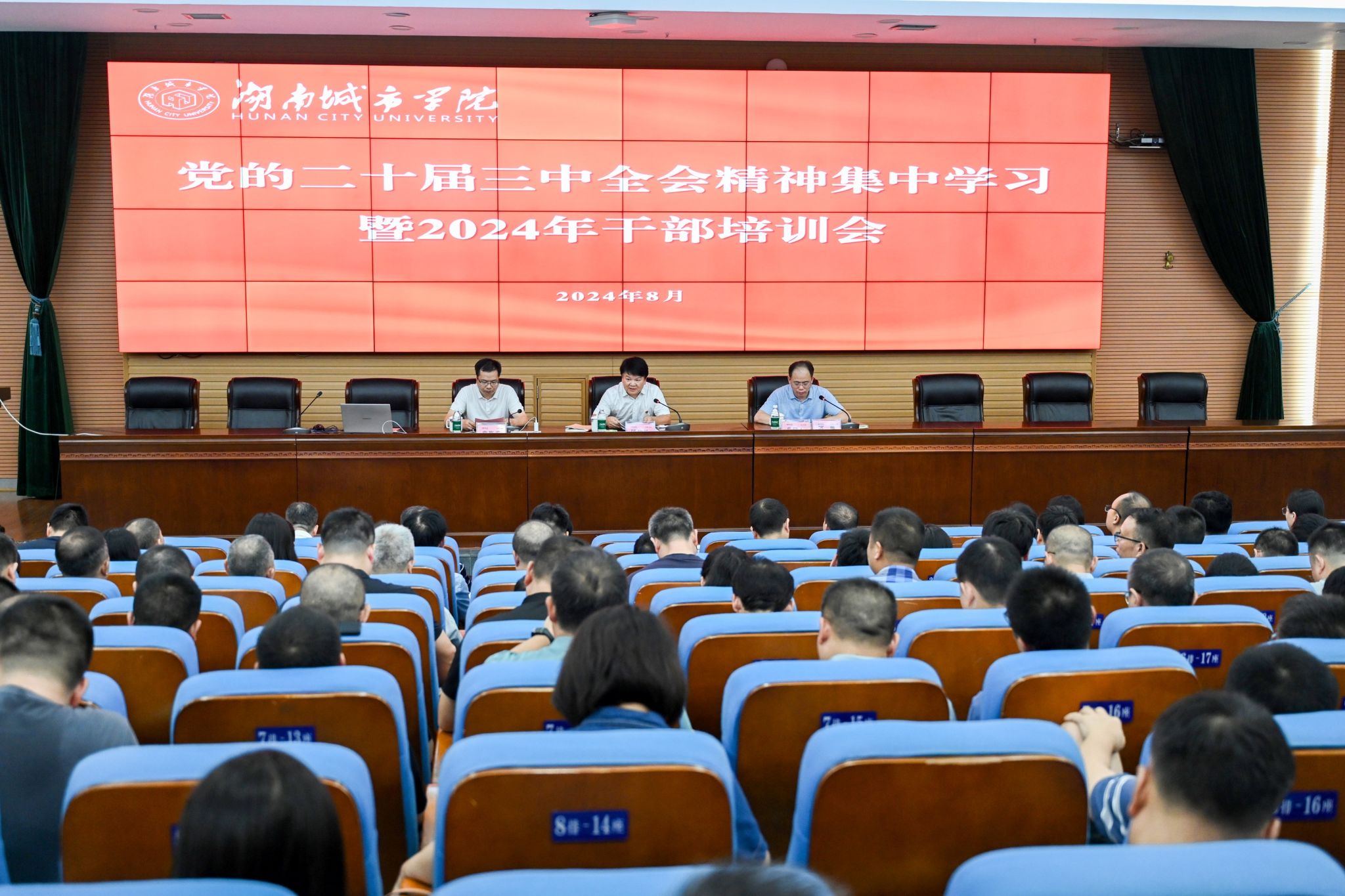 本网讯(通讯员 谢文静)为深入学习贯彻习近平新时代中国特色社会主义思想,落实党的二十大、二十届三中全会作出的重大战略部署,教育引导金年金官网干部树立正确的权力观、政绩观、事业观,提高干部推动高质量发展本领、服务群众本领、防范化解风险本领。8月27至28日,学校举办党的二十届三中全会精神集中学习暨2024年干部培训会。全体在家校领导、全校科级以上干部参加培训。