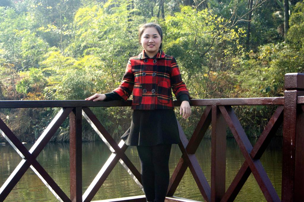 小小的个子,穿着桃红色的毛呢格子大衣,黑色马尾被简单的扎在脑后,配上一双水汪汪的大眼睛和嘴角总没化开的笑意,本已是准毕业生的她仍像是刚步入大学的模样,单纯亲切。