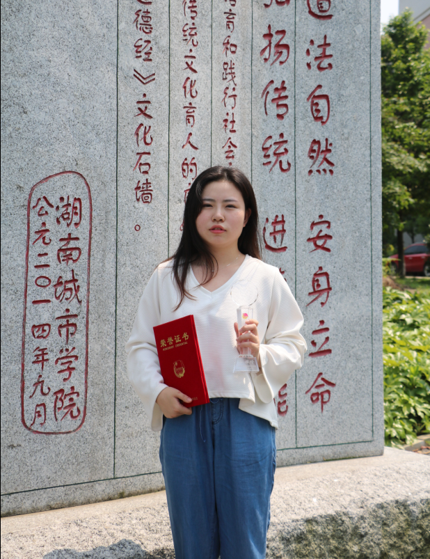2014-2015年度被评为“优秀共青团员”;2015-2016年度被评为“三好学生”;2014-2015年度获得“国家励志奖学金”;2014-2015年度获得院级一等奖学金;2015年获得“SYB创业培训”合格证书;2015年职场模拟大赛荣获“最佳人气奖”;2015年获得党校培训结业证书;2015年获得团校培训结业证书;2015年普通话水平测试获得二级甲等水平。