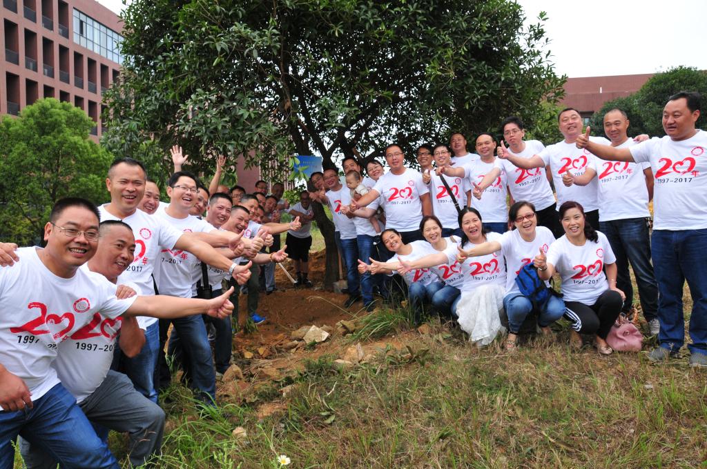会后,学校领导、教师及两个班的校友们分别合影留念,并在鲁班园中植下两颗师生友谊之树,二十载春秋,能够再次共聚,师生们都感慨万千。祝愿校友今后的人生都能一帆风顺,也希望校友们为国家建设再创辉煌。