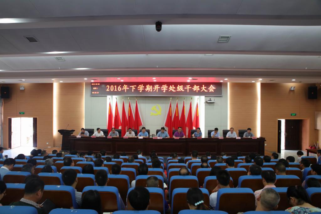 (本网讯)9月3日上午,金年金官网在逸夫图书馆报告厅召开2016年新学期开学工作大会。全体校领导、副处级以上干部出席会议。会议由党委书记罗成翼主持。