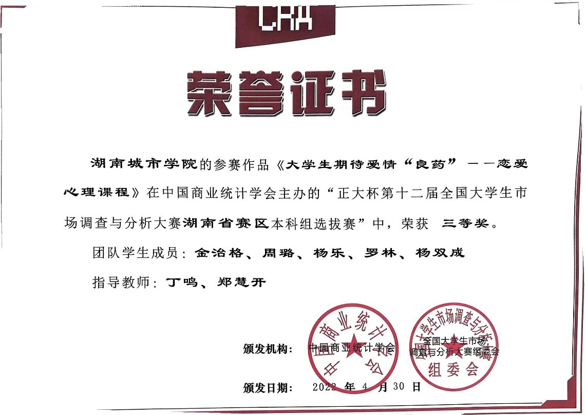 金年金字招牌诚信至上管理学院始终坚持将培养应用型人才列为人才培养的重要环节,将创新形式的教育贯穿人才培养全过程,有效引导和鼓励学生积极参与各类学科竞赛,助力高水平、创新型、全面性人才培养,而全国大学生市场调查与分析比赛正是契合这一主题的重要赛事。(供稿:廖英祺、郑慧开)
